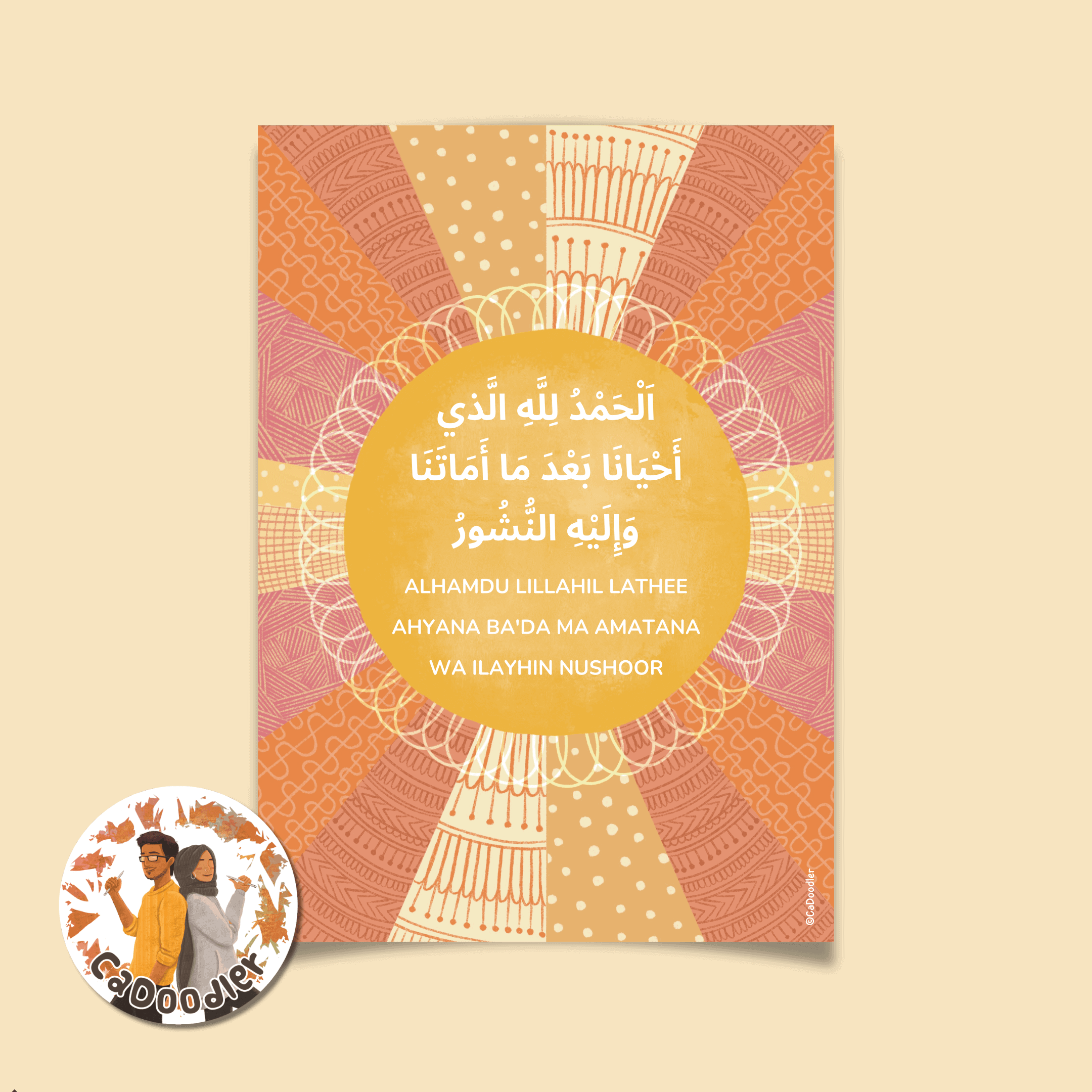 A soft, warm Islamic print featuring the Dua for Waking Up in Arabic and English. Ideal for children’s rooms.